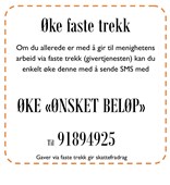3) Send: ØKE "ØNSKET BELØP" til 91894925 om du ønsker å øke eksisterende avtale om fast trekk.